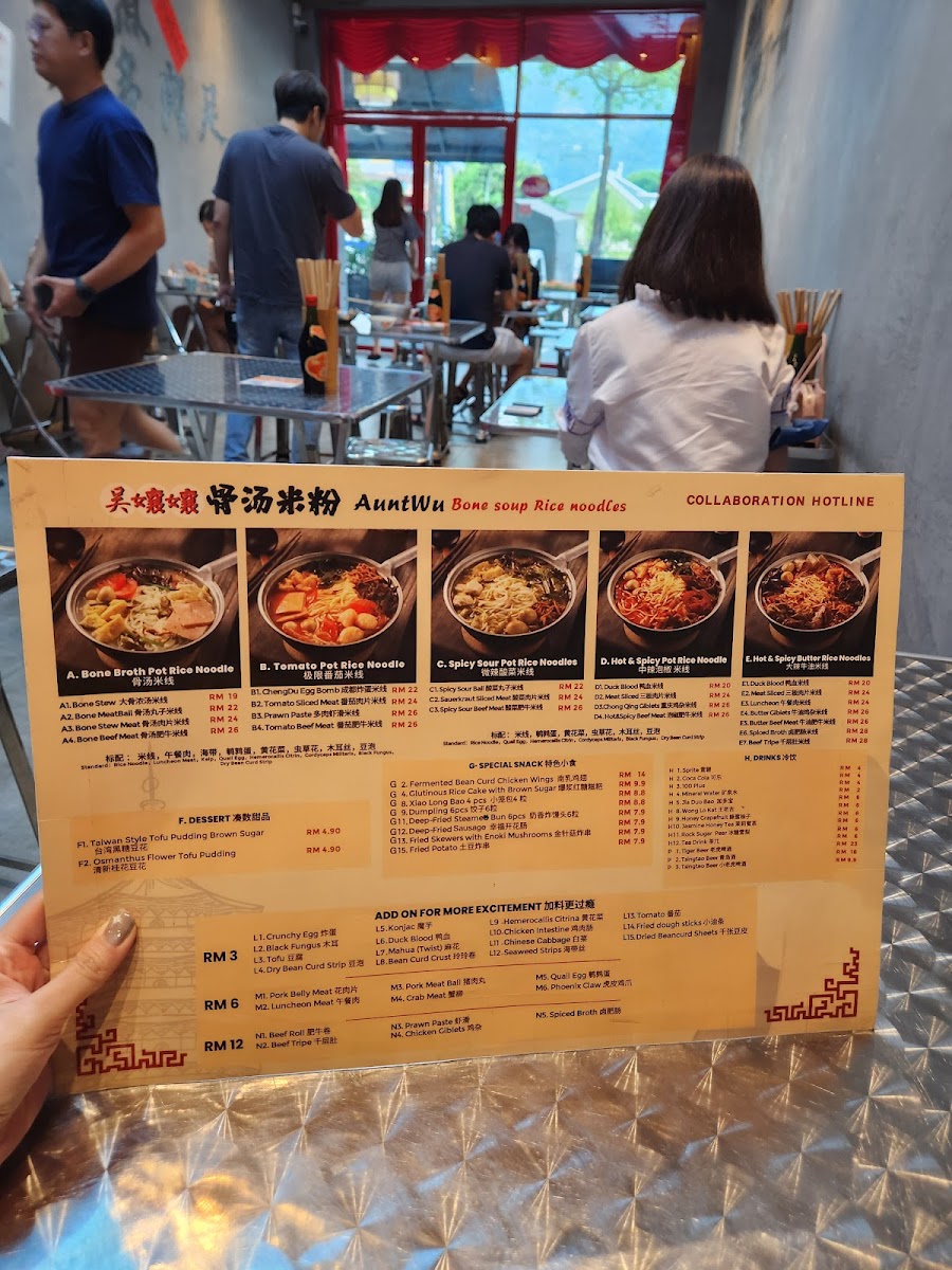 Welcome to 吴嬢嬢骨汤米粉 WU NIANG NIANG NOODLE Restaurant All Seasons, a delightful gem tucked away in George Town, Penang. This charming Chinese eatery specializes in rich rice noodle soups, where the highlight is their exceptional pork bone broth. Customers rave about the robust flavors, with options ranging from spicy butter mala noodles to a tangy tomato soup. Each bowl is generously portioned, and the added bonus of complimentary rice noodle refills and refreshing drinks enhances the dining experience. The inviting atmosphere and attentive service make it a cozy haven for noodle enthusiasts. The diverse menu caters to various palates, ensuring everyone can indulge in a satisfying meal. With its strong reputation from the Klang Valley now gracing Penang, Wu Niang Niang is poised to become a beloved local dining spot. Join us to savor a bowl of their delectable noodles and discover why customers are eager to return.